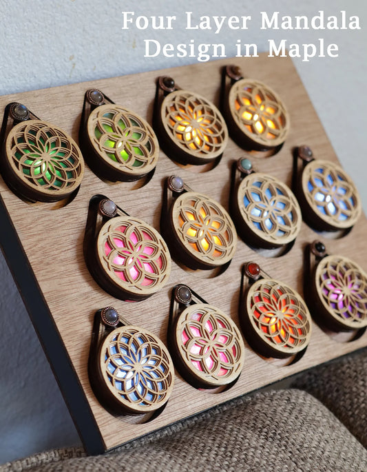 XL Multilayered Stained Glass LED Pendant in Maple | Lotus Of life
