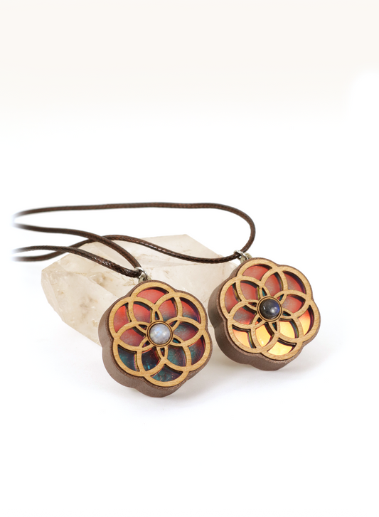 Seed of Life Iridescent Acrylic in Dark Copper Filament | RGB Fade LED Pendant