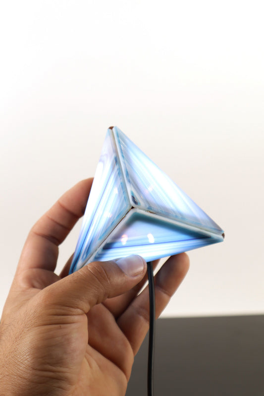 Stained Glass Pyramid Lamp | Mixed Blue | USB Powered Dimmable LED Accent Light