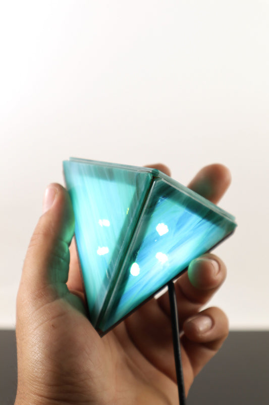 Stained Glass Pyramid Lamp | Teal Wisp | USB Powered Dimmable LED Accent Light