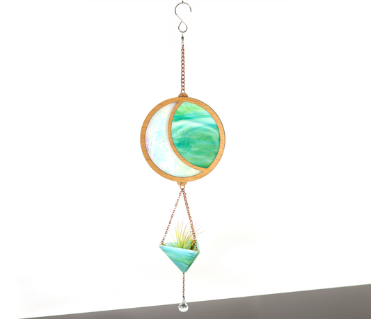 Iridescent Moon Stained Glass Pyramid Plant Hanger