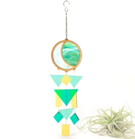 Iridescent Moon Stained Glass Windchime