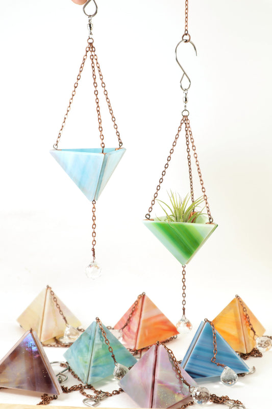 Medium Stained Glass Hanging Pyramid Terrarium Suncatcher