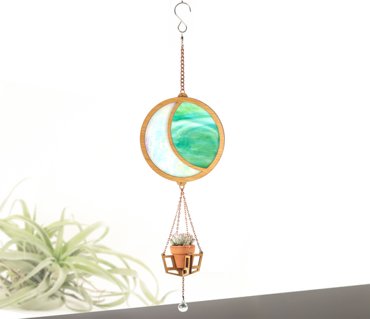 Iridescent Moon Stained Glass Terra Cotta Plant Hanger