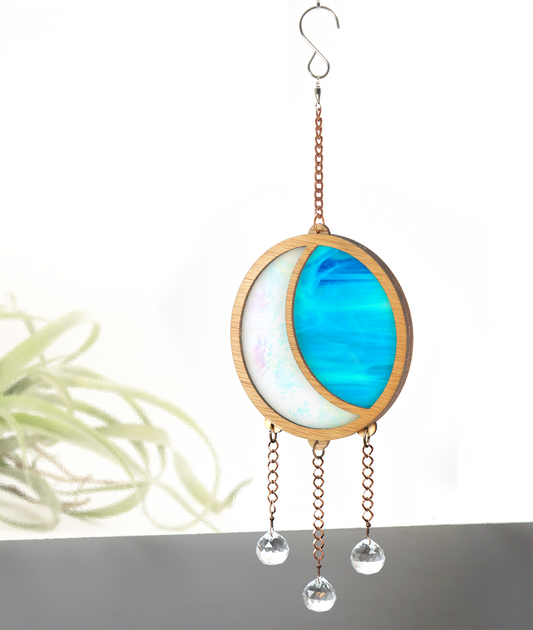 Iridescent Moon Stained Glass Suncatcher Crystal Hanger