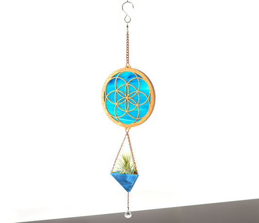 Seed of Life Stained Glass Pyramid Plant Hanger