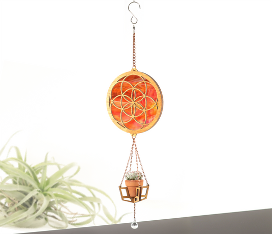 Seed Of LifeStained Glass Terra Cotta Plant Hanger
