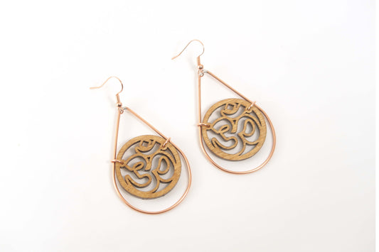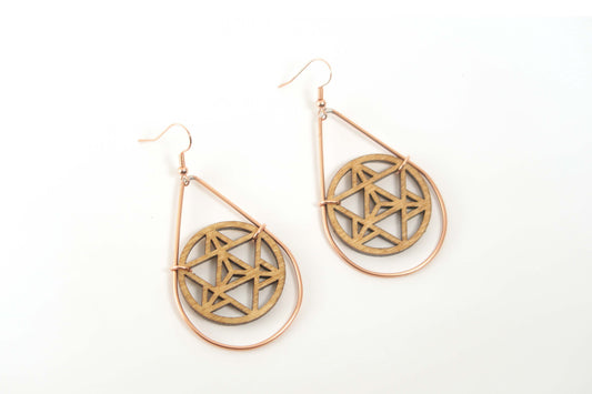 Merkaba Wooden Teardrop Earrings in Brass Frame